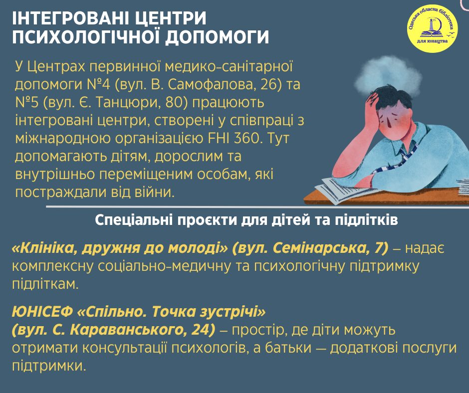 В Одесі вже працює розгалужена мережа установ, де діти та підлітки можуть безкоштовно отримати психологічну підтримку. Це стало можливим завдяки Всеукраїнській програмі ментального здоров’я «Ти як?», а також співпраці міської влади з міжнародними гуманітарними організаціями.