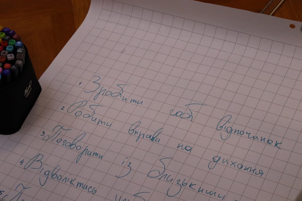 Разом ми створювали власну «ментальну аптечку» — набір простих і дієвих інструментів, які можна використати щоразу, коли сил стає трохи менше. Це були і техніки заземлення, і вправи на дихання, і маленькі практики доброти до себе.