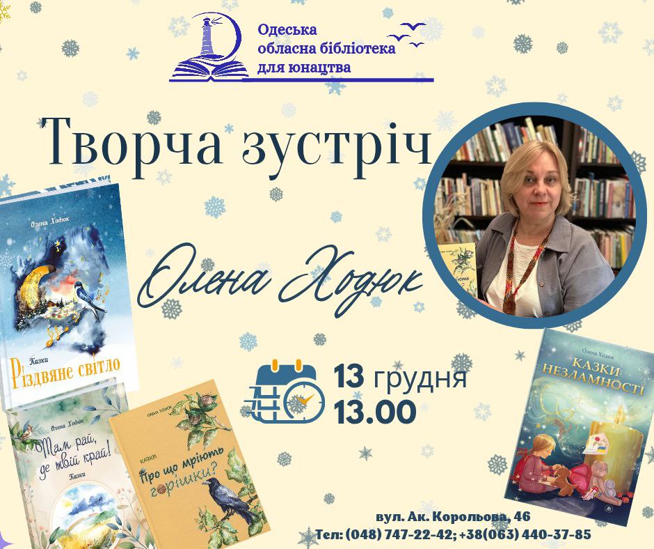 13 грудня о 13:00 до нас завітає Олена Ходюк — авторка теплих, світлих і надзвичайно добрих книжок, які надихають мріяти й вірити в дива!