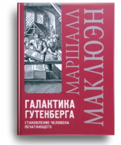 «Галактика Гутенберга» — це низка історичних спостережень за новими культурними формуваннями, які є результатом «збуджень», викликаних спершу писемністю, а згодом друкуванням. Праця, присвячена дослідженню впливу масової комунікації на людське мислення, принесла Маршаллу Маклюену славу медіатеоретика і прогнозиста нових медіа. Автору вдалось передбачити драматичні технологічні інновації — мережеве, стиснуте «глобальне село», яке виникне в реальності лише наприкінці.